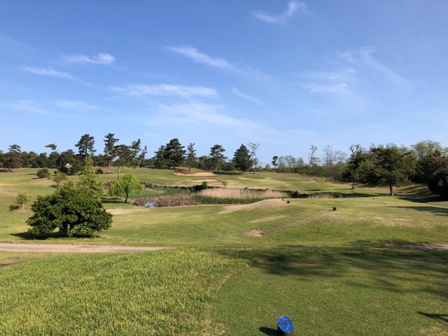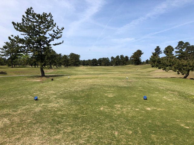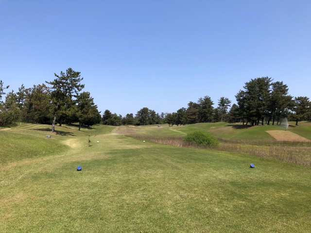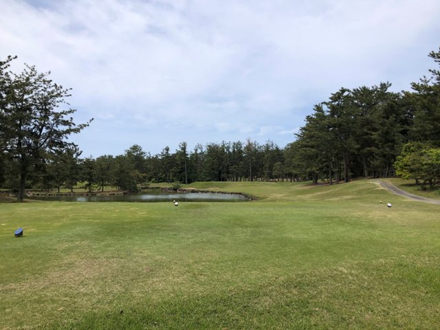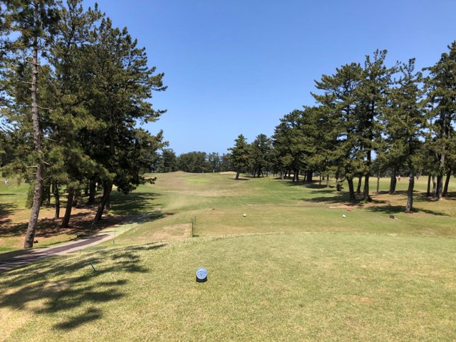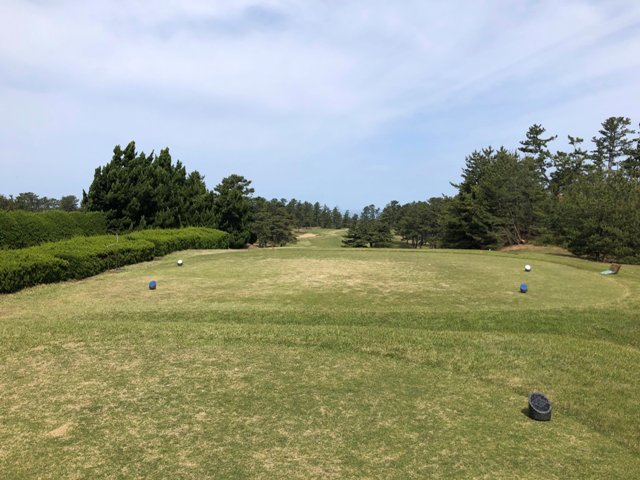 クラブハウスからトコトコとカートに乗ってやってきまして、日本海に向かってティーショットとなる日本海コースです。ラフ・ラフと来たのですがボギーオンしまして、なんとおはようバーディーでございます。えらいっ!オレ。しかし、早くも3Hでチョロ連発のトリ。つづくティーショットは左の丘へ、あるんじゃないかなと来てみましたが残念ながら白杭の外。仕方がないのでその辺からの4打目はラフ。ラフ・バンカーそして出ずとなりましての9。スタートホールはなんだったんだ。その後もダボもトリもありまして前半終了です。