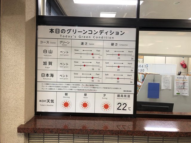 3日目は加賀です。フェアウェイにはいかなかったもののボギー3つとまずまずのスタート。しか~し、ショートで池に入れて3打目も外します。さらに3パット。その後もチョロだの、木に当てるだのといつもどおりとなります。お昼後はセカンドが花道。なのにザックリ、ボクはガッカリ。その後もいろいろとやらかします。いいの、あがり2つはボギーだったからと自分に言い聞かせます(16Hは叩いたってことね)。