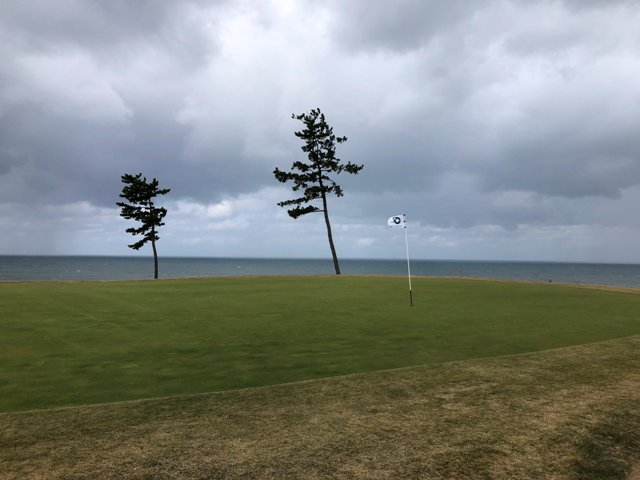 今回は2023年日本女子オープン会場となった芦原にやってきました。よく予約取れましたね。幹事さんと日光CCに感謝です。前回は18Hで悲惨なOB大連発がありましたので、無事にラウンドできると良いのですが。今日は残念ながらの曇り空ですがレストランからドーンと海が見えるのは嬉しいですね。インからのスタート、ティーショットはフェアウェイにいったもののセカンドをバンカーへ、乗せられずのダボスタートです。次のホールではOBと早くも暗雲が漂ってきました。それでもダボもあるけどボギーもあるというペースでなんとかホールを進みます。荒れ気味の日本海を左手に臨む17Hショートはボギー、そして18Hロングにやってきました。リベンジのティーショットはフェアウェイ、よしっ!セカンドもまあまあです。これはパーもあるかもよと調子にのったせいか3打目は左ラフ、アプローチは寄らずのボギーで前半終了でした。OB連発しなかったし良いことにしましょう。