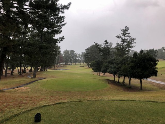 翌朝は日本酒を飲み過ぎたせいか大浴場に行く元気がないので部屋のシャワーにしておきましょうか。ホテルの朝食をお願いせずにコンビニサンドイッチにしておいて良かった。今日は片山津の白山です。コース到着後に準備をして空の様子を見ているともうすぐスタートというタイミングで雨が降ってきました。あらら、カッパ着るか。おっ、今日は黒からですか、ありがとうございます。戴冠経験のあるお二人にご迷惑をおかけしないように頑張りましょう。ティーショットは、バックからにしては上出来な場所に行ってくれました。しかしそこからのセカンドをダフってバンカーへ、その後もヘロヘロのスタートです。今日初のショートはティーショットを大きく曲げましたが戻せてボギー、次もボギーでゴルフっぽくなってきました。こんな感じで行きたかったのですが2回目のショートで曲げた後はすんなり戻れず+α。ロングをなんとかボギーで前半終了です。