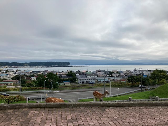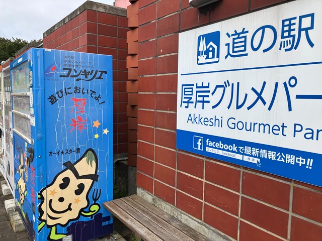 今日もそこそこの距離を走ることになりますので、食事はせずに出発して最初のセコマに入ります。ああ、ここホットシェフじゃないじゃんとゴルフに続いて再びの失意を感じながら買ったパンを齧りながら走りますかね。休憩で寄った厚岸の道の駅では駐車場のそばまで鹿がきていました。住宅地も近いのですが馴れているんですね。自販機にはオーイ☆スターくんというゆるキャラが描かれていました。そういえば厚岸のカキって有名ですよね。今日はレストランが休みなので帰りに寄ってみましょうか。