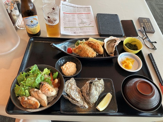 ラウンド後は納沙布岬に寄りましたが、ここも霧で島は見えませんでした。さまざまなモニュメントがありました。日本人として考えさせられる地ですね。浦安の方ではプーさんは人気者なんですが・・・。釧路へ戻る途中で厚岸の道の駅によって昼食です。カキテキ丼とやらに加えて生、焼き、フライとカキ尽くしをノンアルビールといただきます。カキがダメな人にはとんでもないメニューですが私は満足。でも、ビール飲みてえ。ホテルに入って、お母さんの店に行って、残った焼酎を飲み切ってからおやすみなさい。