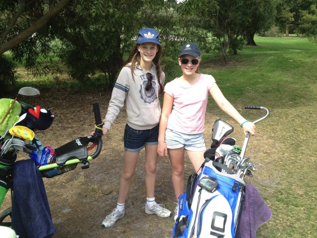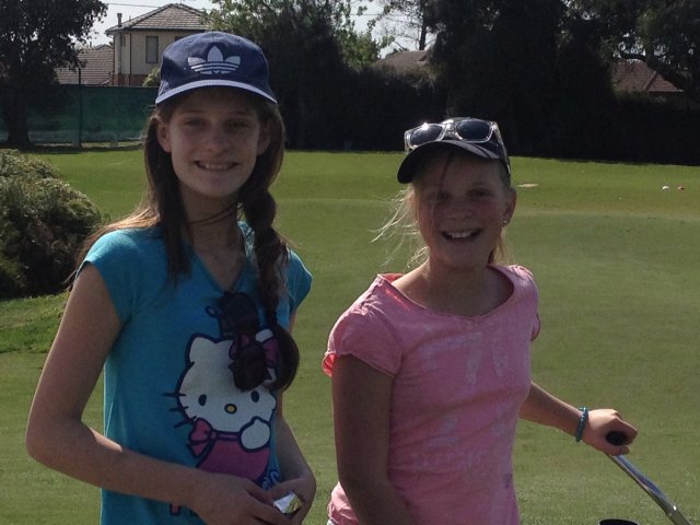 パッティンググリーンで転がしていると、今日約束していたウイリーがやって来ましたが、その時2人の娘さんを連れていました。