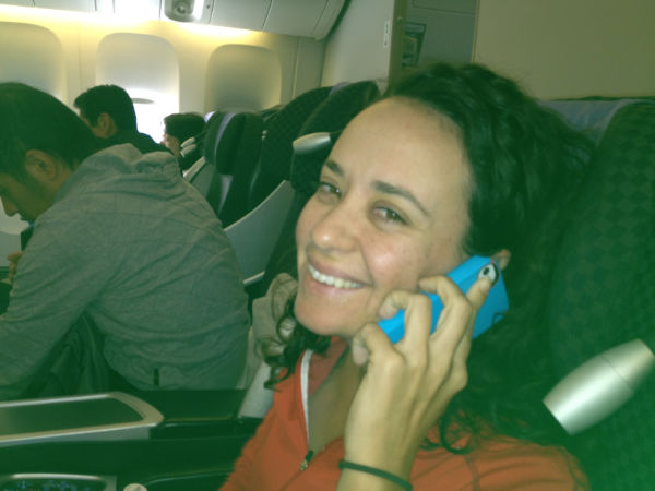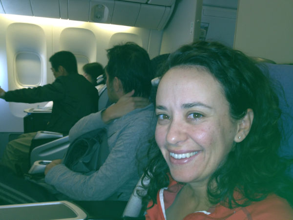 LAX到着直前にI PHONEで写真を撮りましたが、誰しも10時間からのフライトの後は、すごい顔になります。疲れてスッピンでも充分ですが、一緒に撮ろうと言って、私の頬に顔を寄せてきた写真をアップできないのが残念です。