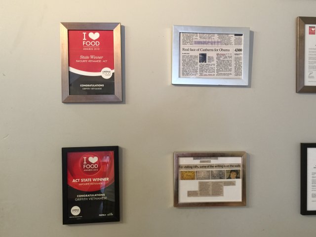 中でも1番驚いたし、どうしても紹介したいのがグリフィス・ベトナミーズです。この店は街の中心からも少し離れているし、小さな、どちらかといえばさびれた商店街の一角にあり、席数も25席程度と、こちらにしては小さな規模のレストランです。