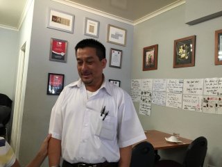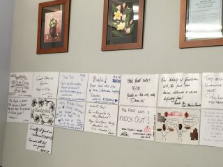 日本には有名人の色紙が貼られている店が良くありますが、ここも何故か壁にたくさん貼られています。良く見てみるとベストレストランに2度も選ばれているではありませんか、私が壁を見ているとタムがやって来て、額に入った新聞記事を指さして、オバマが来たんだ。と言いました。えっ、こんなところにオバマ・・・他にも州知事や世界から色々な有名人が来ていました。