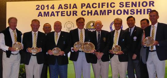 初日から飛び出したオーストラリアチームが優勝して、2位はニュージーランド3打差、日本は3位でしたが、日本とオーストラリアの差は24打差でした。ポールから連絡があり、初日、二日目と個人戦はリーダーにゴードン、他の選手もトップ5に5人が入っていたそうです。団体戦と圧倒的にリードしたこともあり、2日目の夜の宴会で呑みすぎたのか?最終日は、みんな良くなかったそうです。