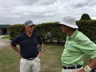 3月中旬に、ソレントでオーストラリアディフェンスフォースの代表と、ライダーカップ形式で対抗戦があると、予定表で知っていたので、ナショナルGCじゃなくて、ソレントでしょ?というと、我々の話を聞いていたステファンがやって来て、それはビクトリア州の話だよ、我々はこっち、シャツの胸をさしてナショナルチーム・・・だそうです。