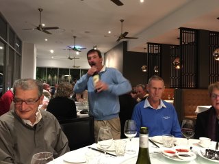 初日のパーティーは盛大で、100人以上が参加しました。選手は勿論、キャディーさん、会場のサンクチュアリーコーブのコミッティー、ゴルフニュージーランドの役員、ゴルフオーストラリアの役員です。