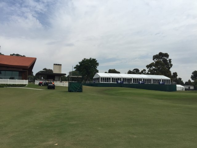 来週からオーストラリアンマスターズが暫くぶりにハンティングデールで開催される為、コース内は看板やテレビ塔、仮設のトイレや観覧席も出来上がっています。