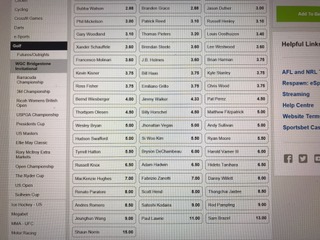 今週はブリジストンインビテーショナル。2日目は天候が悪くなるようだし、コースも長いので、飛ばし屋が有利、マキュロイにはうってつけのコースだと思いますが、今年後半から試合間隔を取るようになったジョーダンは、目下2連勝中、オッズもまだ9倍。カナディアンOPでは、久しぶりに狙ったキーガンブラッドリーの活躍もあったので、今週はジョーダンの優勝と普段は買わないTop5を厚く。その他では、近頃、目を付けているトミーフリートウッドとシーウーキムのTop5かTop20を配当が良いので、買ってみたいと思っています。