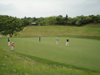 しかして5月26日、成田ゴルフ倶楽部に参上いたすのでございました。すでに練ランで二度ラウンドしておりますので、そこそこコースは理解しております。しかもスコアは40/41/43/40となかなかの安定感。『へへっ!ここは拙者に向いているかもしれませんのお。あとはグリーン次第ですかのお。あ、黄金水を少々いただけますかの?』・・・拙者、実は山田の選手でございます。が、やはり本家を大切にするという”義理”を欠いては世間は渡れません。朝のご挨拶は京カンのテントでございます。なぜか偶然に同伴競技者となられた(なってしまった笑)Sちゃんとクラブの外の練習場で一汗かいた後の朝の会合ですな。スタート時刻は9時42分。集合時間は5時45分という過酷なお約束のもと、集合した拙者の起床時刻は3時45分!ただいまの時刻、8時半。眠いです。正直もうゴルフするのも面倒です。しかも本日は徐々に風が強まり昼過ぎには風速10メートルの予報。緊張感ゼロのオトコが、徐々にやる気ゼロのオトコに変わりそうでございます。