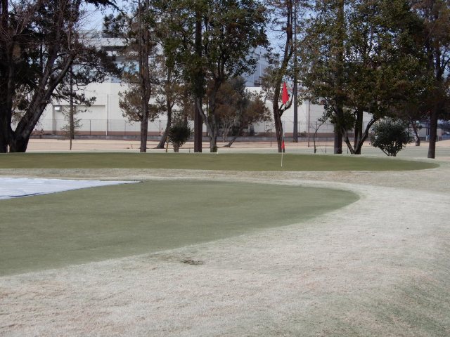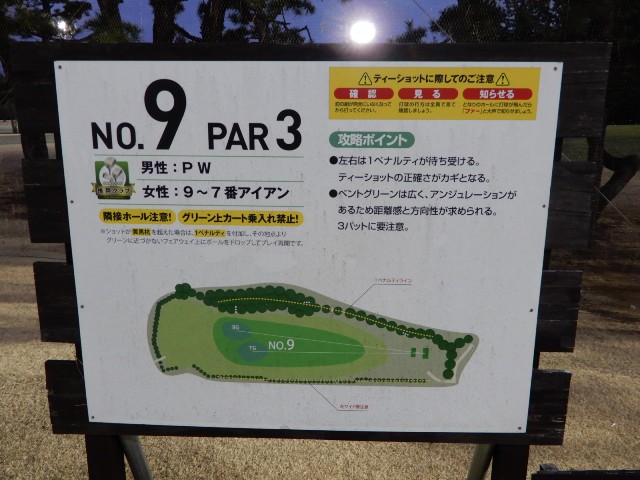 9H 約1430yのヤーテージです。ベントとティフトンの2グリーンですが本日はベントのようです。ショートコースだから、高麗グリーンであろうと勝手に思い込んでいたので、青木功パターを持ってきていたのですが。。。