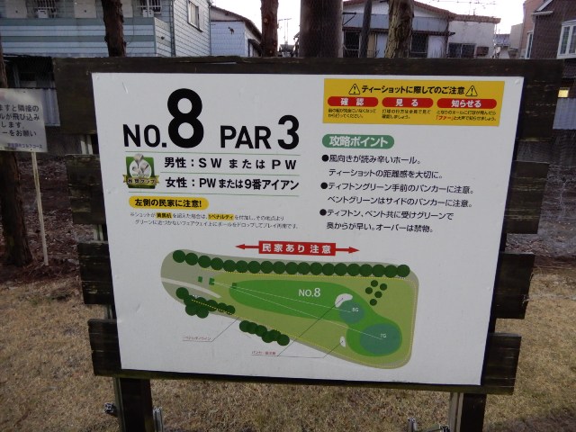 こちらは男性推奨5番Iとなっています。他のホールもはっきり何番以上のクラブ使用不可、といった表記はなかったようです。私は8Iで。2打でも乗らず。そこからそのまま8Iで転がし乗せようとするが、オーバーして奥に。4打目もオーバー。5打目もオーバーの往復ビンタ。6打目ようやく乗るも3パットの9。全く距離感が合わない。青木功パターも入らない。呆然自失です。一人焼肉で肉を焦がしてしまったらこんな気分になるのでしょうか(笑)。