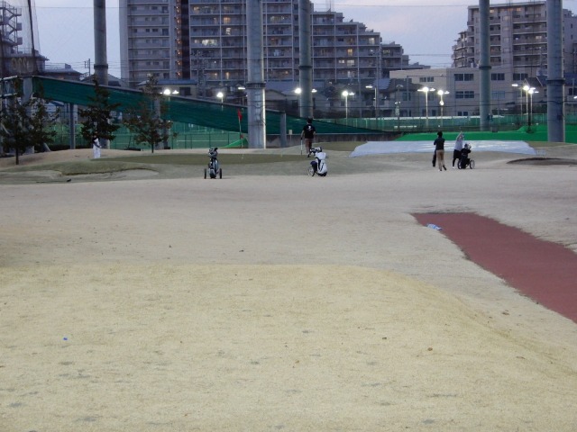 確か4時すぎのスタートだったかと思います。今回は3U、8I、PW、AW, SW、パターの6本で挑みます。そして結局組み合わせでなく一人でのプレーになりました。セルフカートにハーフバッグをセットするのですが、見慣れない新しいカートでうまくバンドで固定できず、困りましたが、前の組になんとなく手慣れた感じのアスリートっぽい女性の人がいたので教えていただき、何とかなりました。ちなみに一人のラウンドは今までにもなくはないのですが、ここは周りの風景があまりにも日常的なので、なんとなく気恥ずかしい感じがします。一人で焼肉屋に入って肉を焼いていると、こんな気分になるのかな、といった感じです。