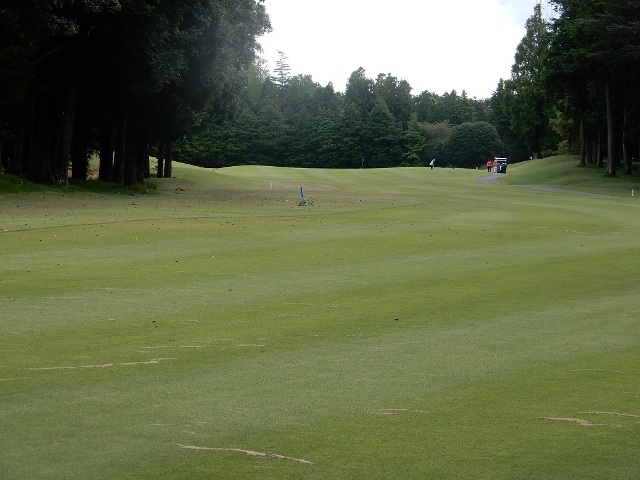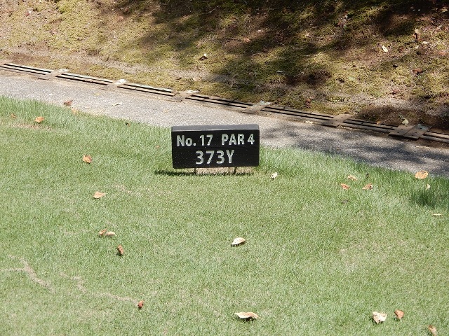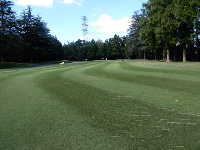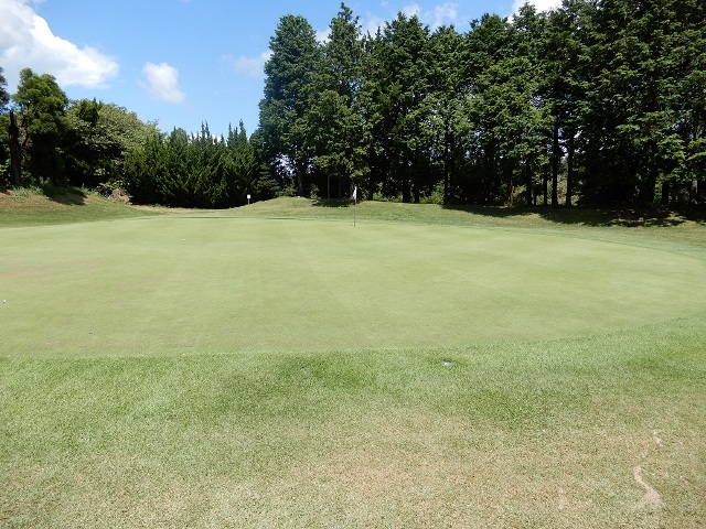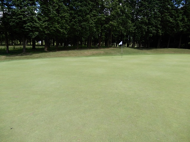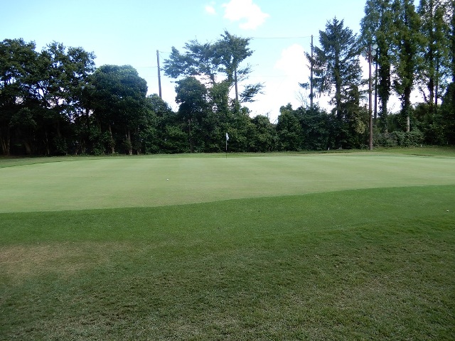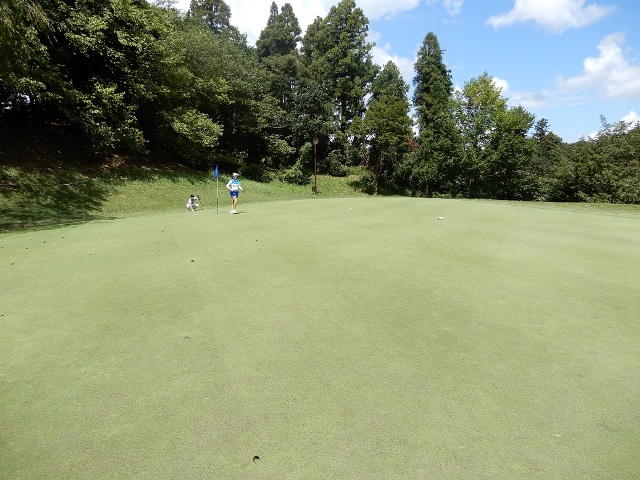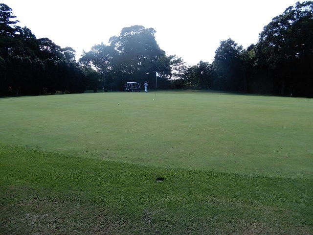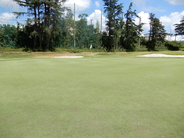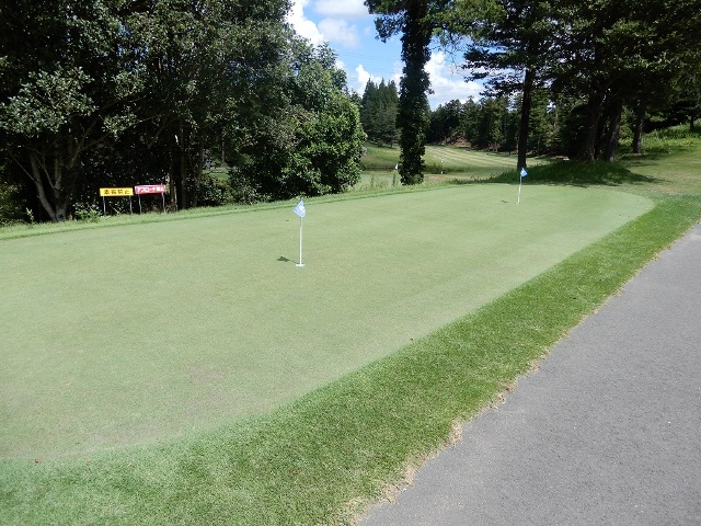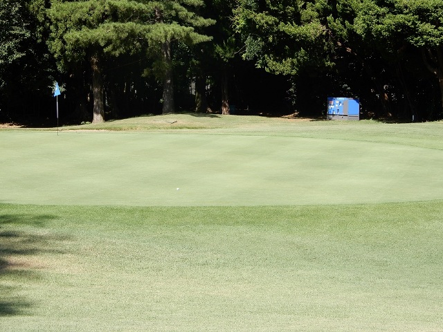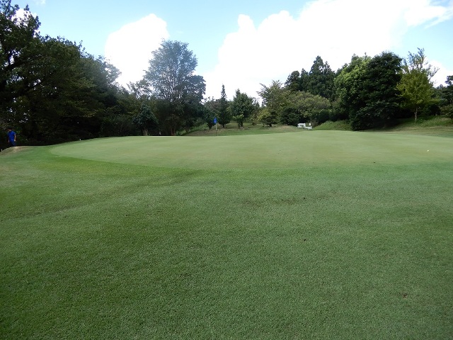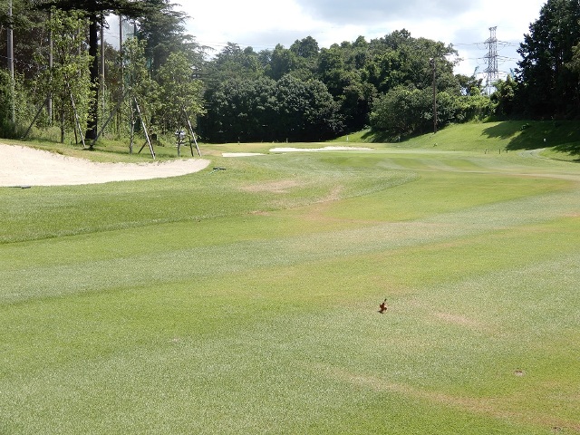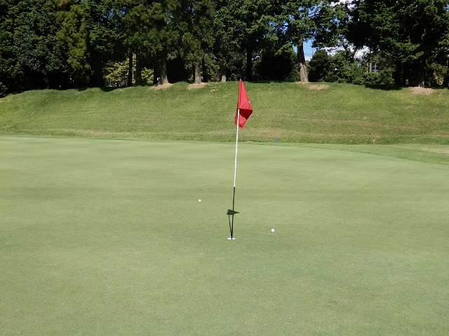 もともと狭め、短め、ドッグレッグホール多数のレイアウトのゴルフ場で、そこは変わっていないのですが、以前あった閉塞感のようなものが、かなり解消されていました。後、同伴者からグリーンで、「ピンの長さが短い気がする」との指摘がありましたが、確かに短い気がしました。ピンを抜きやすくするための配慮でしょうか? グリーンは芝の密度も充分で、楽しめましたが、ボールマークの未修復が多めだったのが残念です。ラウンドスピードも、今回時間は計りそびれたのですが、各ホール待たされることが多かったです。このあたりは来場者層を考えると仕方がない面かもしれません。思い切って最初からそういう前提で、「グリーンは固くしてボールマークがつかないようにする」「スタート間隔をあける」等の対策を行えばいいと個人的には思いました。前回訪問時は、18番PAR3の右手前に縦に3つ連なっていたバンカーがあり、「これって初心者いじめだなあ~」と思っていたのですが、今は1つに減らされていたので、ゴルフ場でも色々工夫はしているようです。