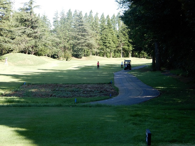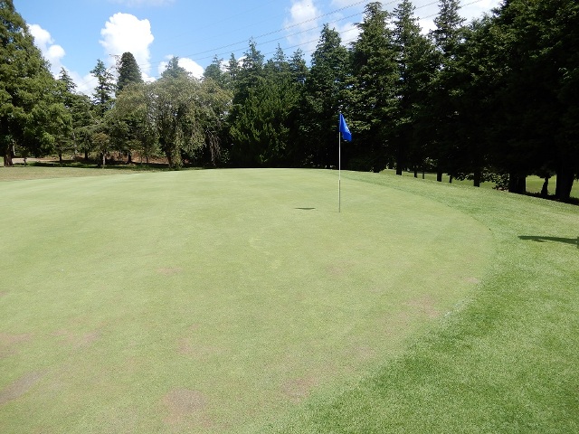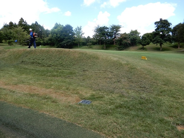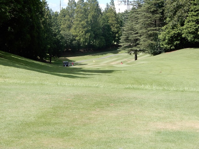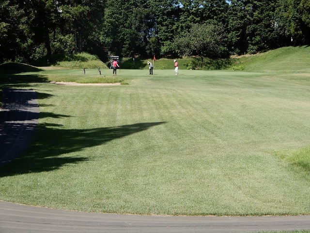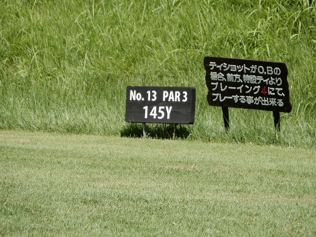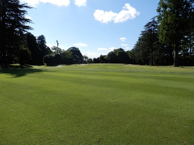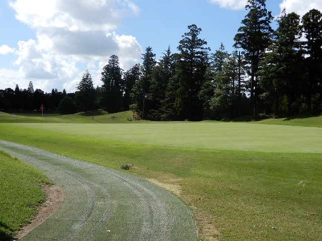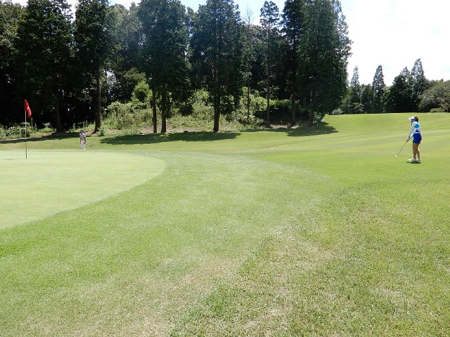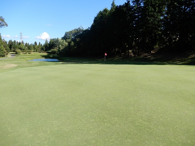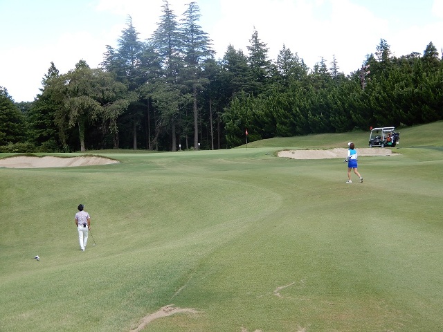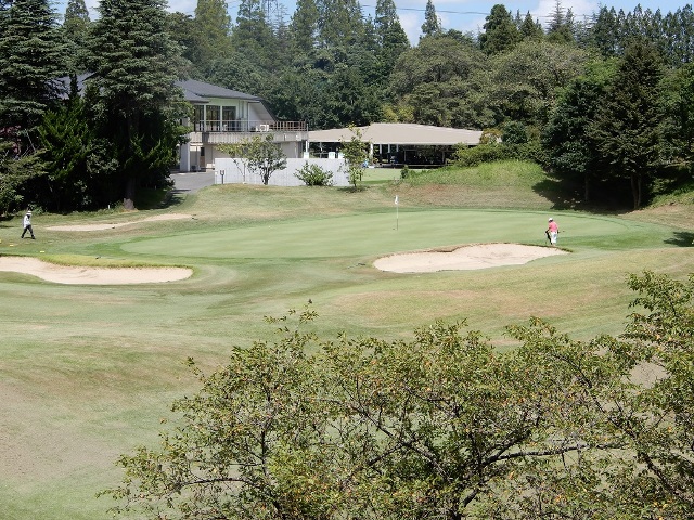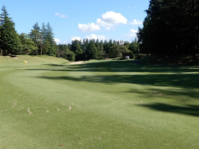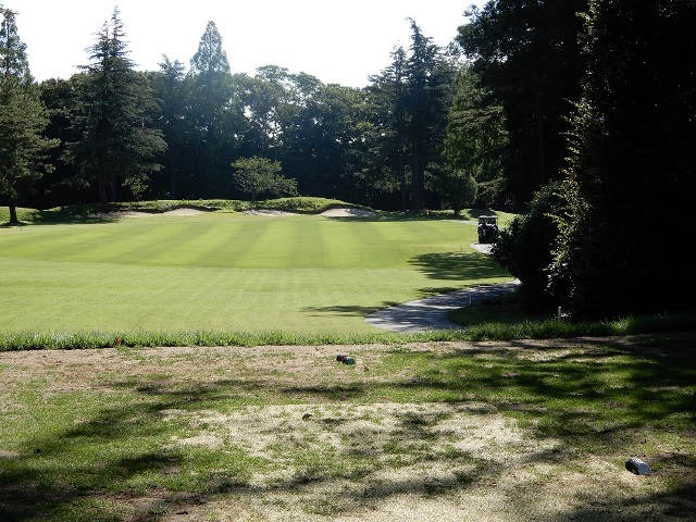 もともと狭め、短め、ドッグレッグホール多数のレイアウトのゴルフ場で、そこは変わっていないのですが、以前あった閉塞感のようなものが、かなり解消されていました。後、同伴者からグリーンで、「ピンの長さが短い気がする」との指摘がありましたが、確かに短い気がしました。ピンを抜きやすくするための配慮でしょうか? グリーンは芝の密度も充分で、楽しめましたが、ボールマークの未修復が多めだったのが残念です。ラウンドスピードも、今回時間は計りそびれたのですが、各ホール待たされることが多かったです。このあたりは来場者層を考えると仕方がない面かもしれません。思い切って最初からそういう前提で、「グリーンは固くしてボールマークがつかないようにする」「スタート間隔をあける」等の対策を行えばいいと個人的には思いました。前回訪問時は、18番PAR3の右手前に縦に3つ連なっていたバンカーがあり、「これって初心者いじめだなあ~」と思っていたのですが、今は1つに減らされていたので、ゴルフ場でも色々工夫はしているようです。