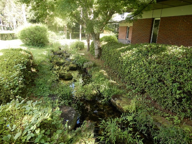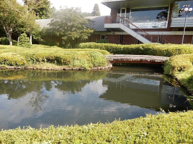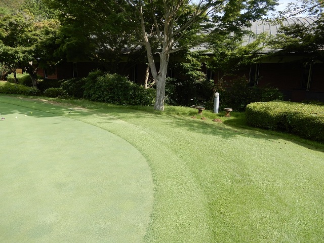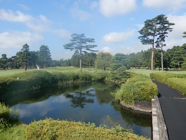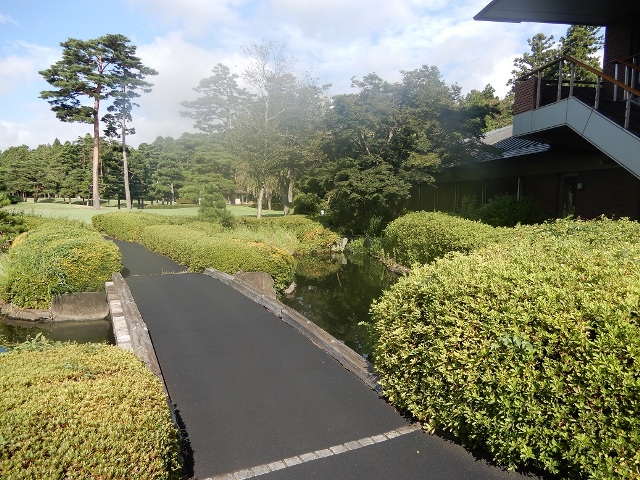 しかし、こちらのコースの佇まいにはいつも心を惹かれます。例えば、浴場外の滝から始まる小川はクラブハウスを囲んで流れ、池につながっていますが素朴な感じです。池にも錦鯉などはおらず、あくまで自然を模した感じです。小川には季節になると、蛍もいるかもしれません。その前には練習グリーンがあるわけですが、そこで、ラウンド後にパター練習等して、グリーンサイドの椅子等に腰かけて美しいコースを見ながら、ゆっくり思索など巡らせ、夕方まで過ごせれば、とても楽しいだろうなあ、と妄想してしまいました。