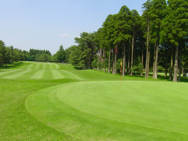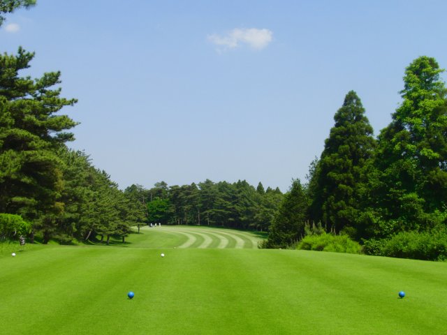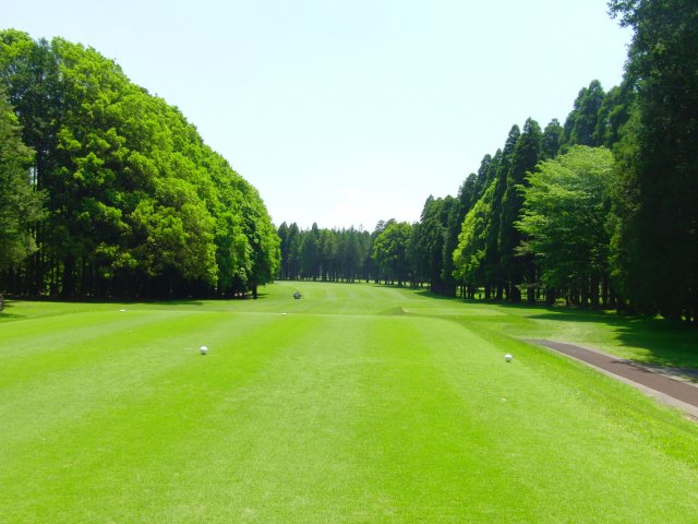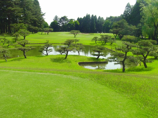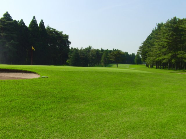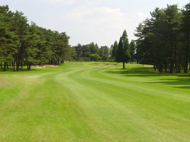 両サイドの杉や松が、コースの仕切りの役割を行い、芝生と緑の競演です。