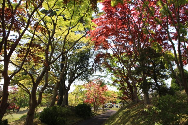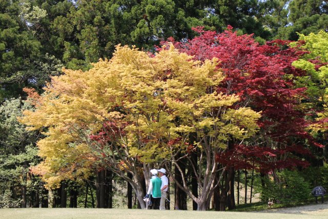 コースに行くと、春の紅葉と言うべく すばらしい色とりどりの絶景です。