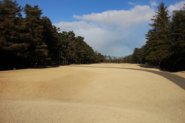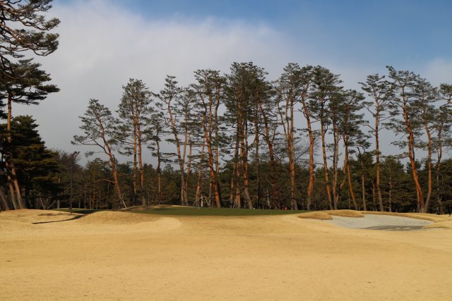 ドライバー、UFO(U4)でバンカー手前からバンカーイン。