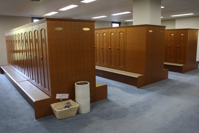 ロッカー室は大広間で、自分の場所を探すのもちょっと大変です。