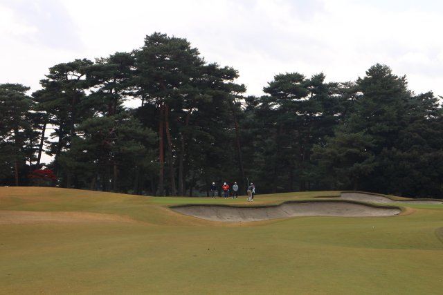 グリーン手前にバンカーが沢山あり、かなりの確率でここに入ります。