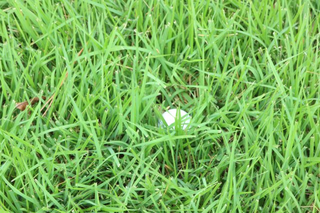 伸ばした密度がある芝なので、ボールが沈んでなかなか見つかりません。