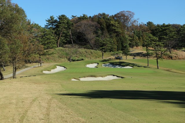 170Yショートホールで、右手前にバンカー 両サイドを受けてくれます。