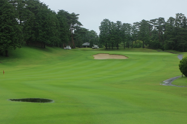 ティーショットの打ち下ろしが多く、ドックレッグしているので狭く感じました。