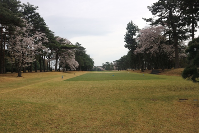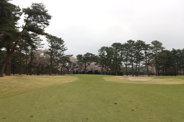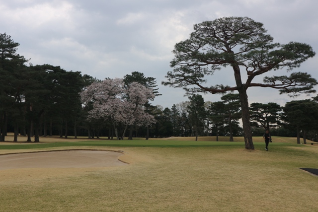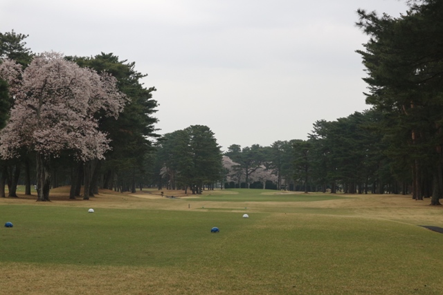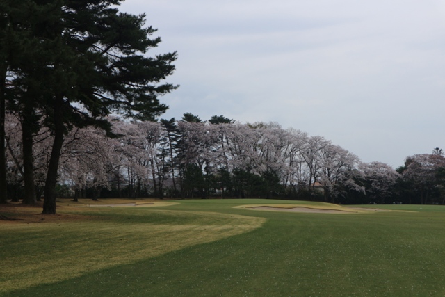 コースは、松を背景として 桜の木が随所に満開になっています。