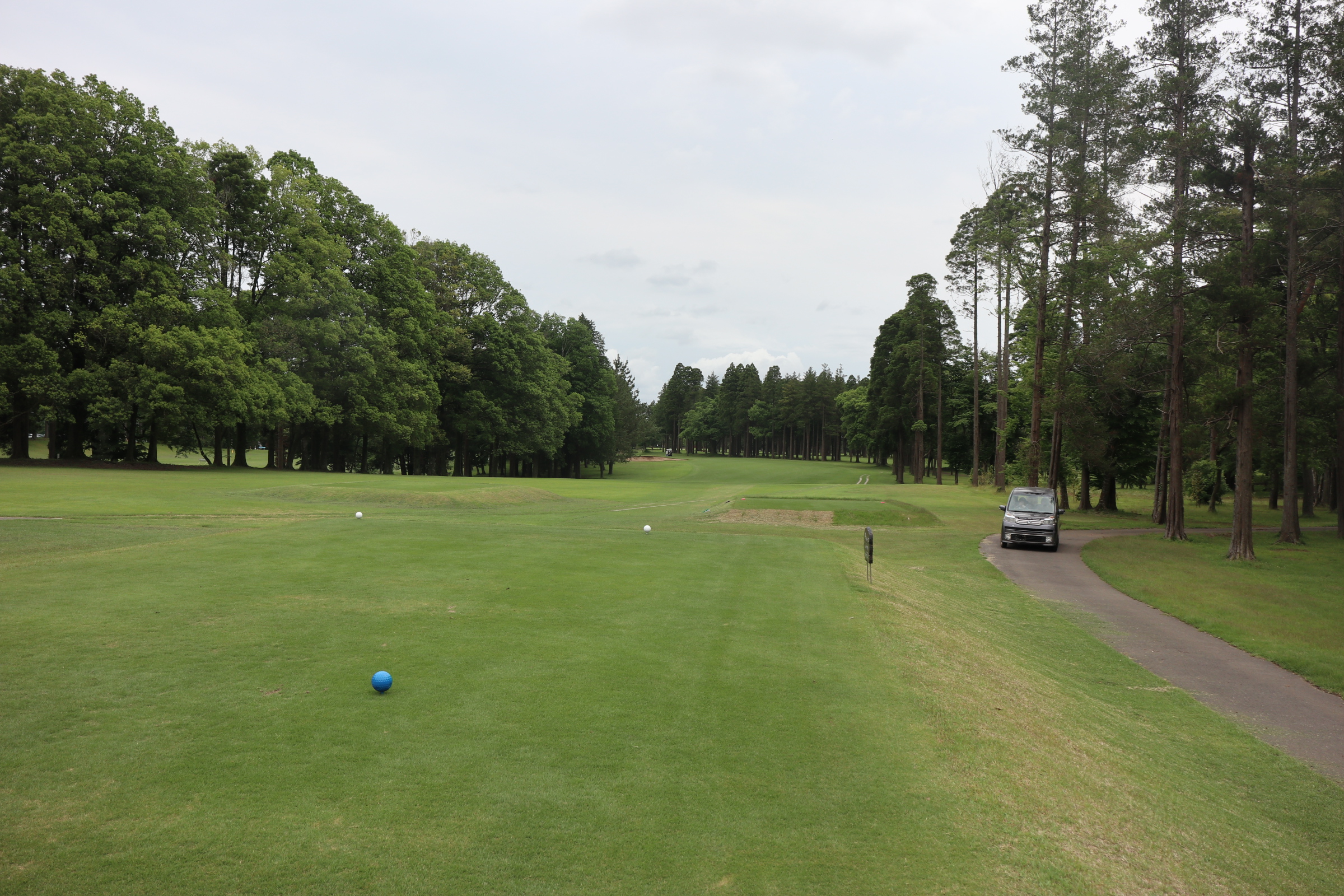 両サイドが杉の木になっており、何回も私のドライバーショットは林帯に入ってしまいます。