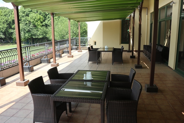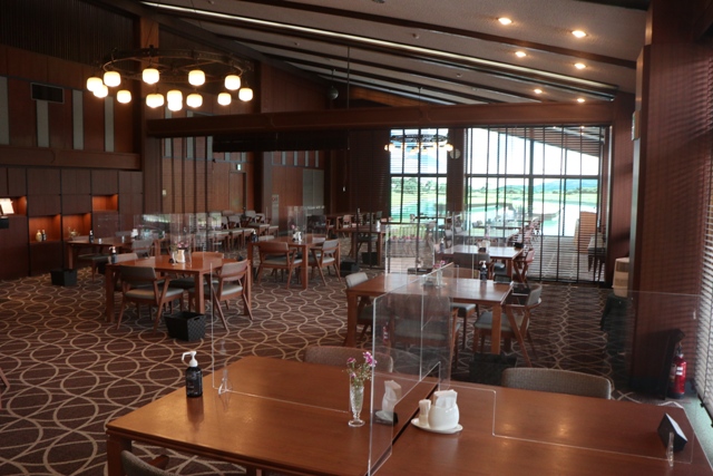 天井も高く、スタートホールを見ながらの朝食はとても良いです。
