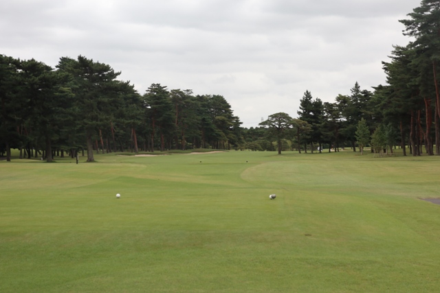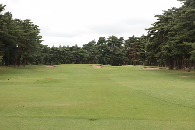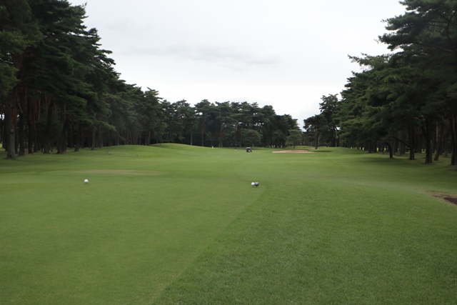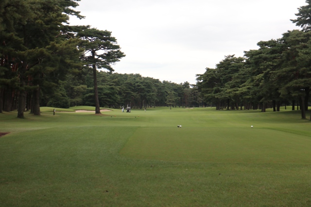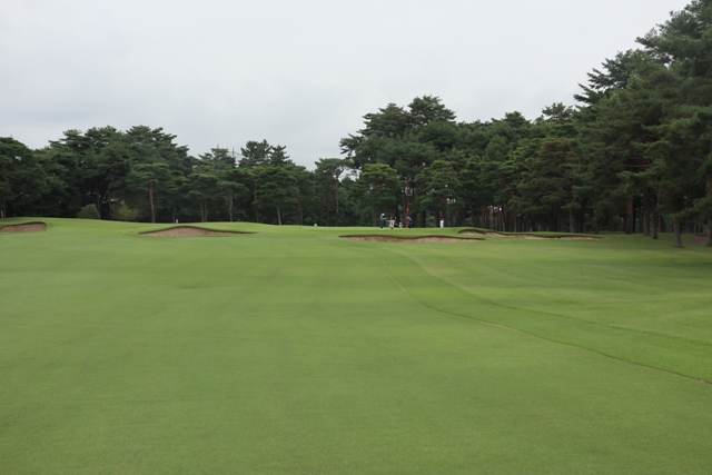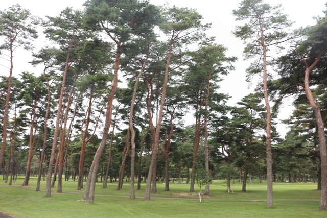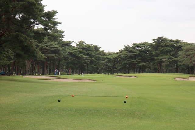 広いFW 白砂のバンカーアクセントを出し、両サイドに剪定されている松です。