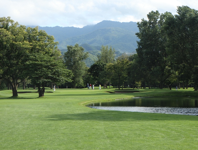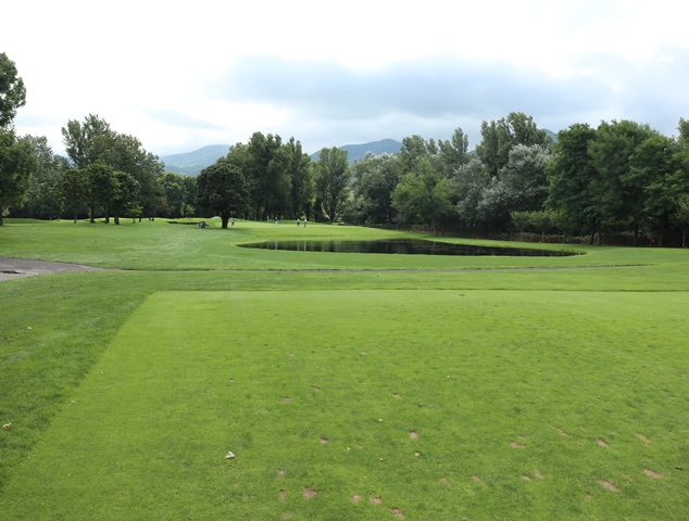 ここは、どうにもなりませんね。池の左にレイアップしかない難易度の高いホールです。