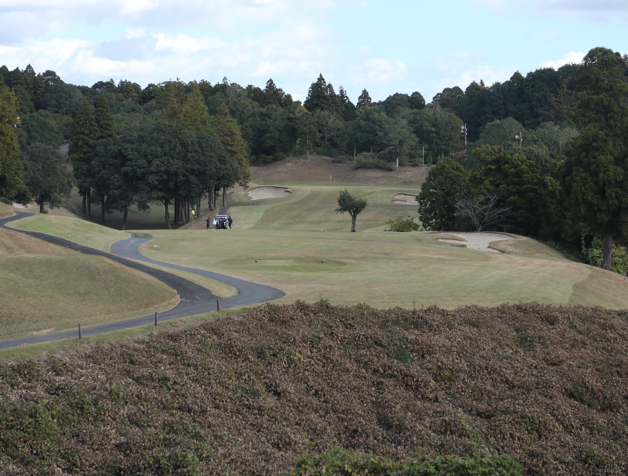 3番ロングはワイドに広く右ルートからパーオン3パットボギー。