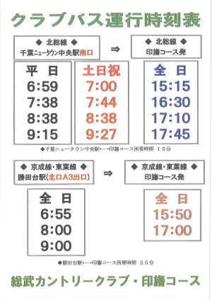 総武カントリーのHPで確認すると、京成線・東葉高速線が乗り入れる「勝田台」から送迎バスが出ている事が判りました。