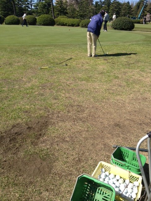 250Yあるレンジ、練習ボールはコースボールです。アプローチ練習場は、ボールがサービスでおいてあります。 残念ながら、楽しみにしていた桜は週末の強風で散っていました