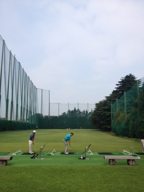 着替えをすませ、練習場に出て行くと、すぐそこにアプローチ練習場、打席練習場が見えます。相変わらず、羨ましい環境です。