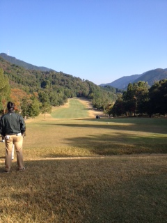 その後も、ティーショットだけは飛ばず曲がらずの220y前後でしたが、第二打以降は、クネクネフェアウエイと粘土質に悪戦苦闘。グリーンも傾斜があり、難しいコースに思えました。