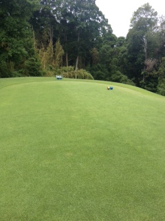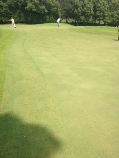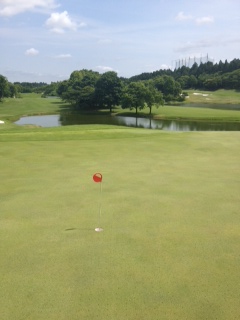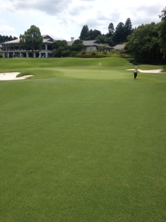 14フィートが売りの高速グリーン。エアレーションが入って、実際は9フィートくらいかな。