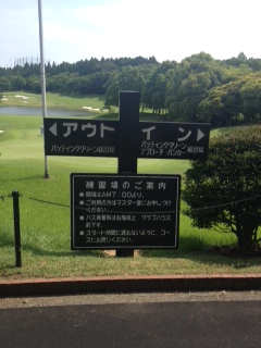 (富里ゴルフ倶楽部 石の看板)さて9時台前半のスタート。