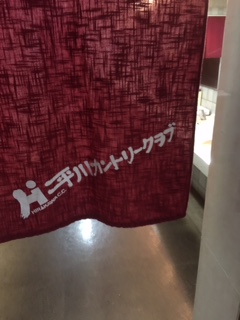 トイレに入るには、温泉のような暖簾が。。お洒落ですね~。