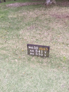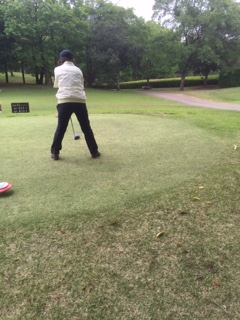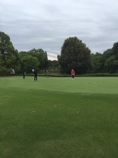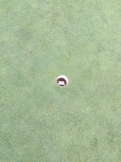 アプローチ練習場はスタート時間が近づき、時間がなくなり、断念してスタートの10番ホールに向かいます。パター練習をすると、ボール一つ分の穴の大きさのカップに出くわしました。他のコースでも見たような気もしますが、久しぶりの小さな穴に、トライして見ました。1mの入れ頃、外し頃の練習には持って来いですね。