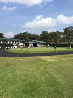 目の前がパター、右側にアプローチ、さらに右奥にバンカーの練習場があります。ボールは自分のラウンド使用ボールを使います。練習場のグリーンは、さほど速いと感じませんでした。