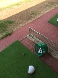練習場は300y打てる広さです。ネットに届く人を見てみたい。1コイン30球を打ちます。