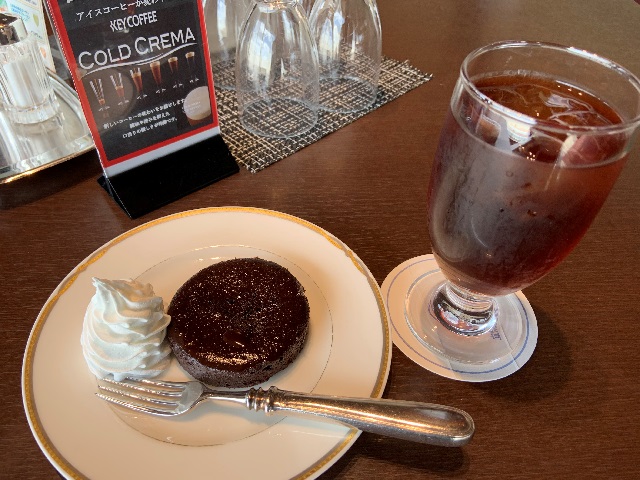 フォンダンショコラ。チョコレートケーキの中にはトロトロのチョコレートソースが。生クリームをかけて食べれば至福の時を