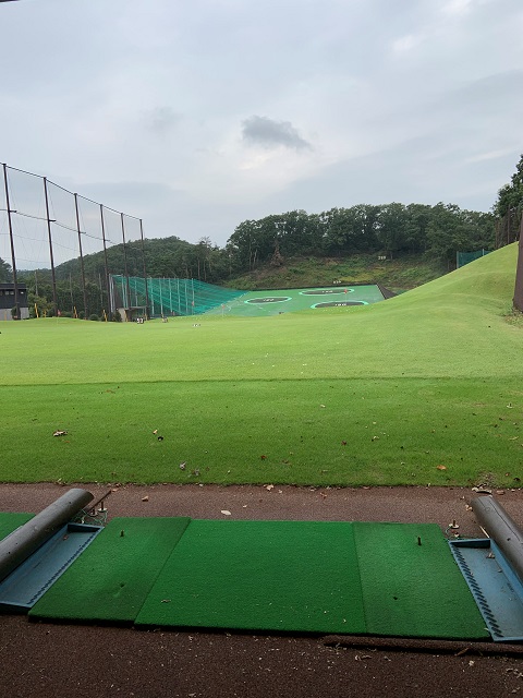練習場。ドライビングレンジ以外にアプローチ専用グリーンもあり、ラウンド後にせっせと練習に励みます