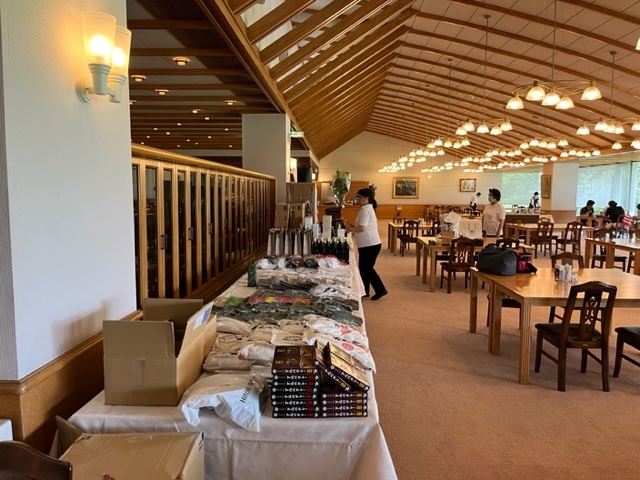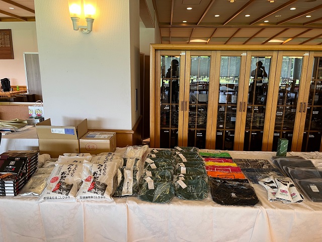 まずは、参加者の皆様がラウンド中ですが、食堂では加賀屋ゴルフのスタッフの方々が裏方で参加賞の準備をされていました。