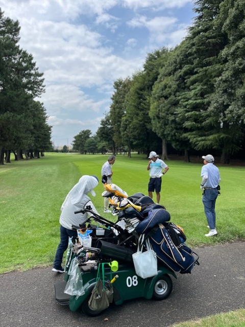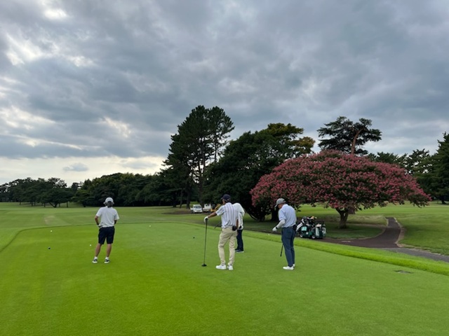 当日はクラブハウスに到着すると結構な混雑、県民デーと言うこともあり、多くのビジターが押し寄せて来ているようでした。相模カンツリー俱楽部は練習場も充実していて、距離のある打ちっぱなしレンジはもとより、バンカー、アプローチ練習場も機能的な配置です。しかも打ちっぱなしは2カゴまでサービスです。普段はあまり練習しない私も、時間があったこともあり、一通りの練習をして、ラウンド前にすでに大汗です。ただこの日は雲が多く、強い日差しを遮ってくれるような天候、風も爽やかで猛暑の中とは言え、比較的ベストな1日でした。これも日頃の行いが良いせいなのでしょうか?